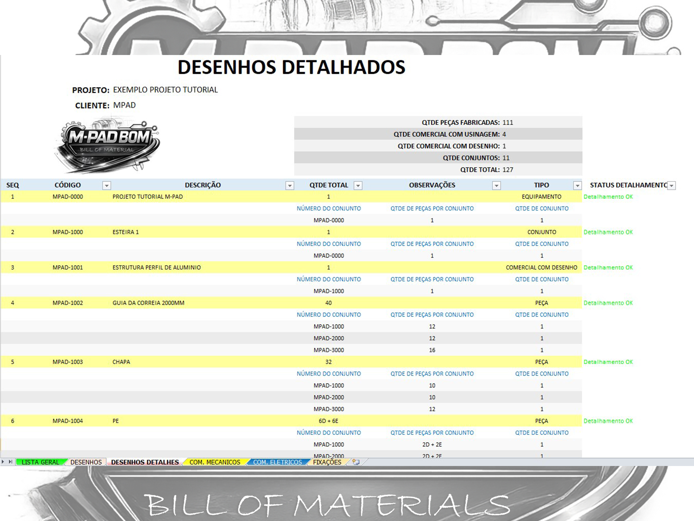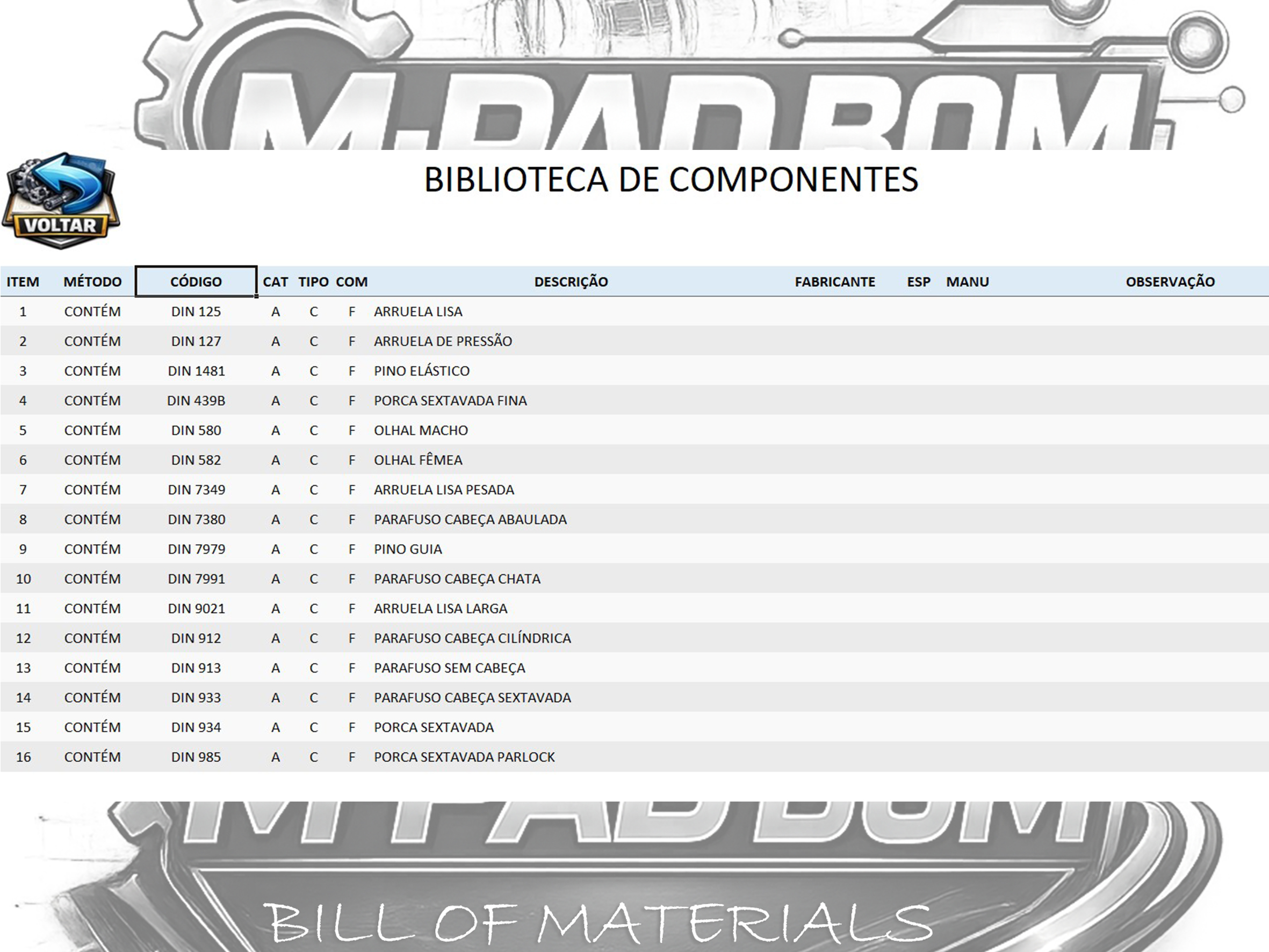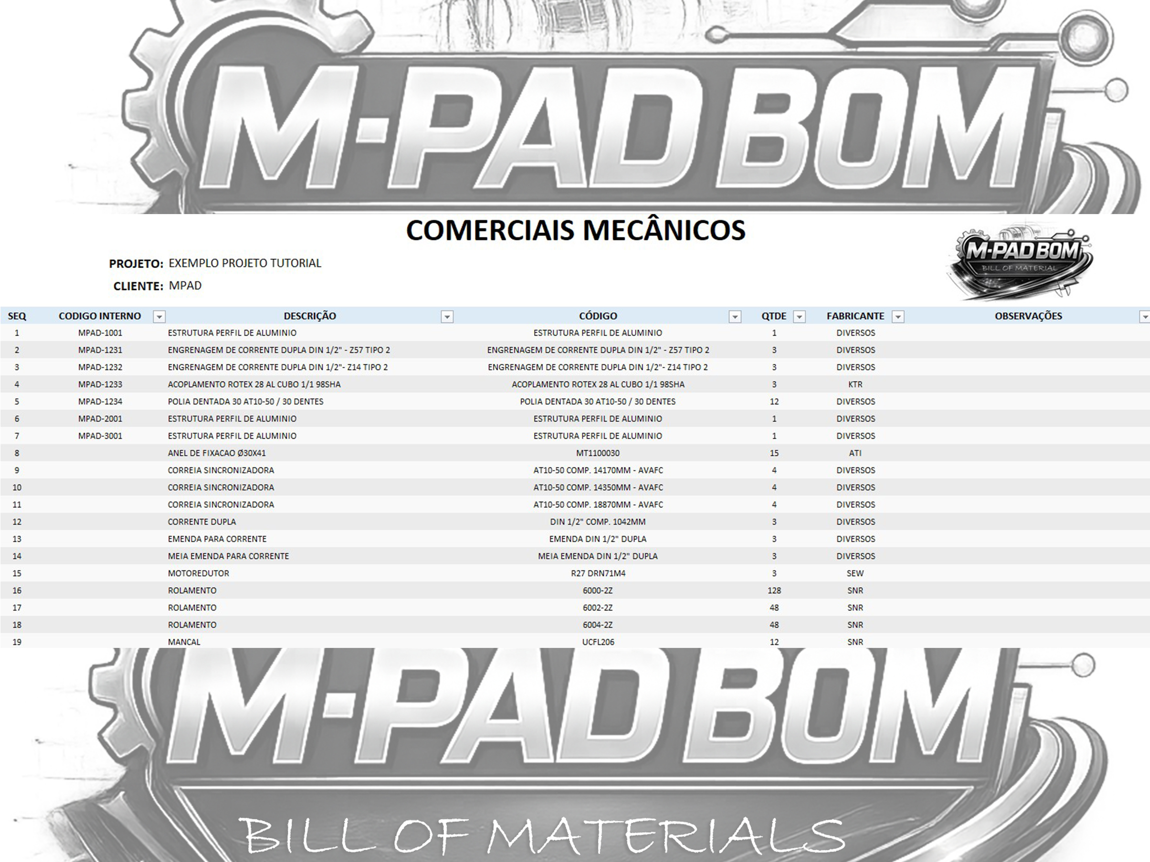 A M-PAD BOM é a planilha para Lista de Materiais criada por quem vive projetos mecânicos na prática.