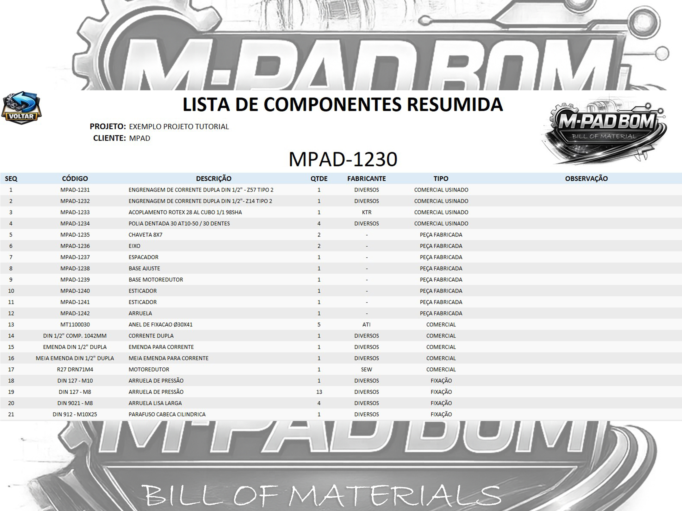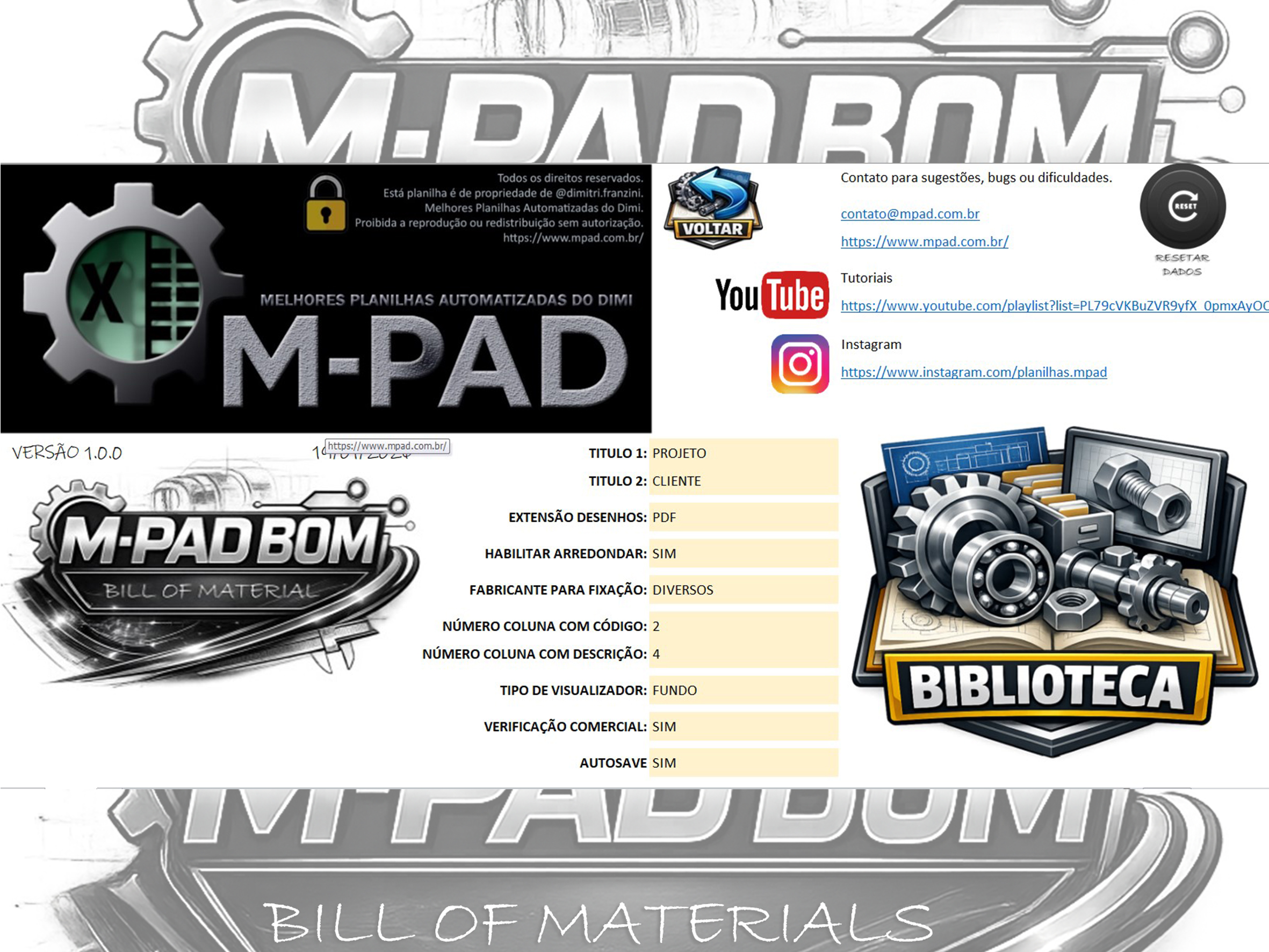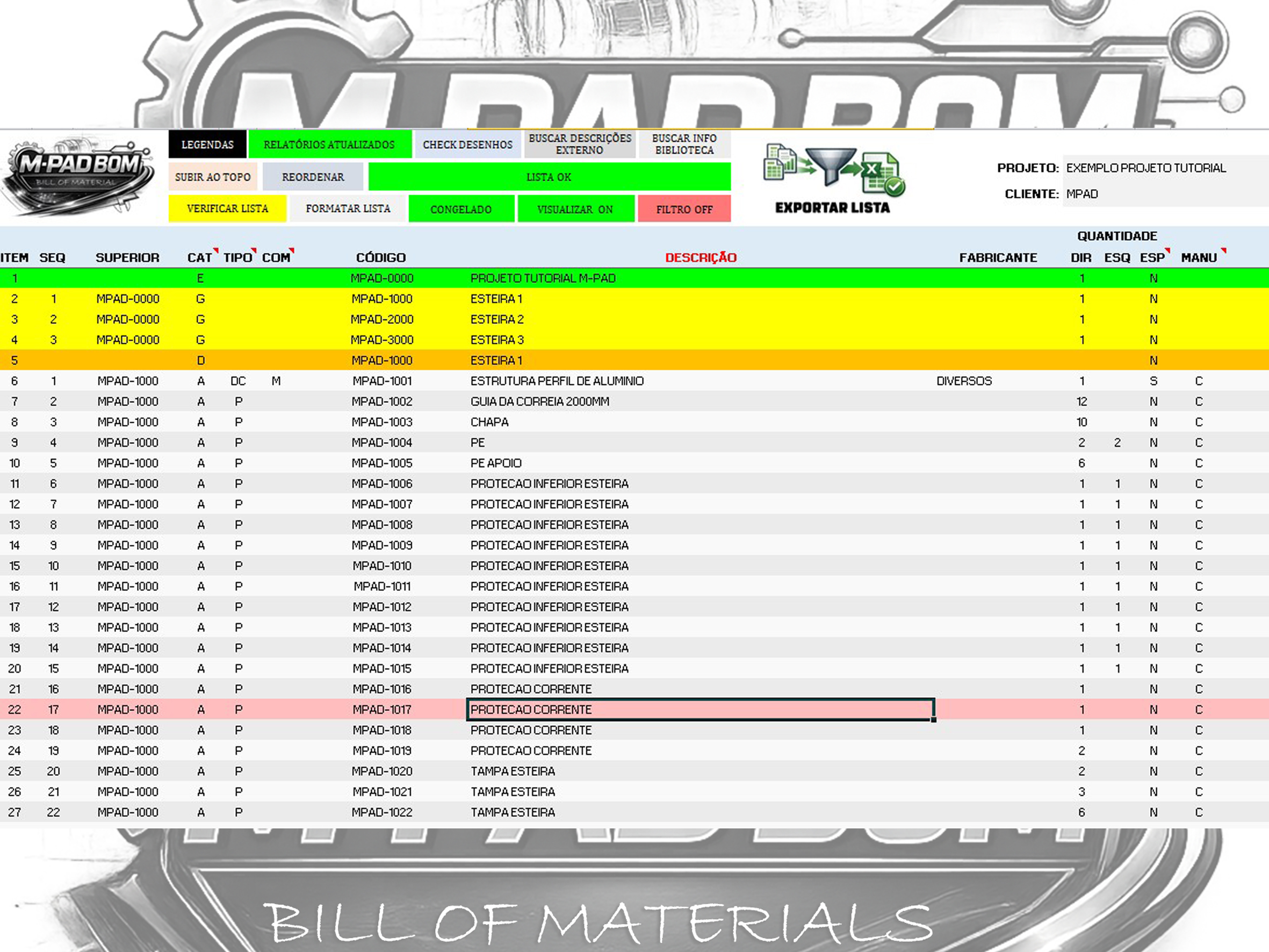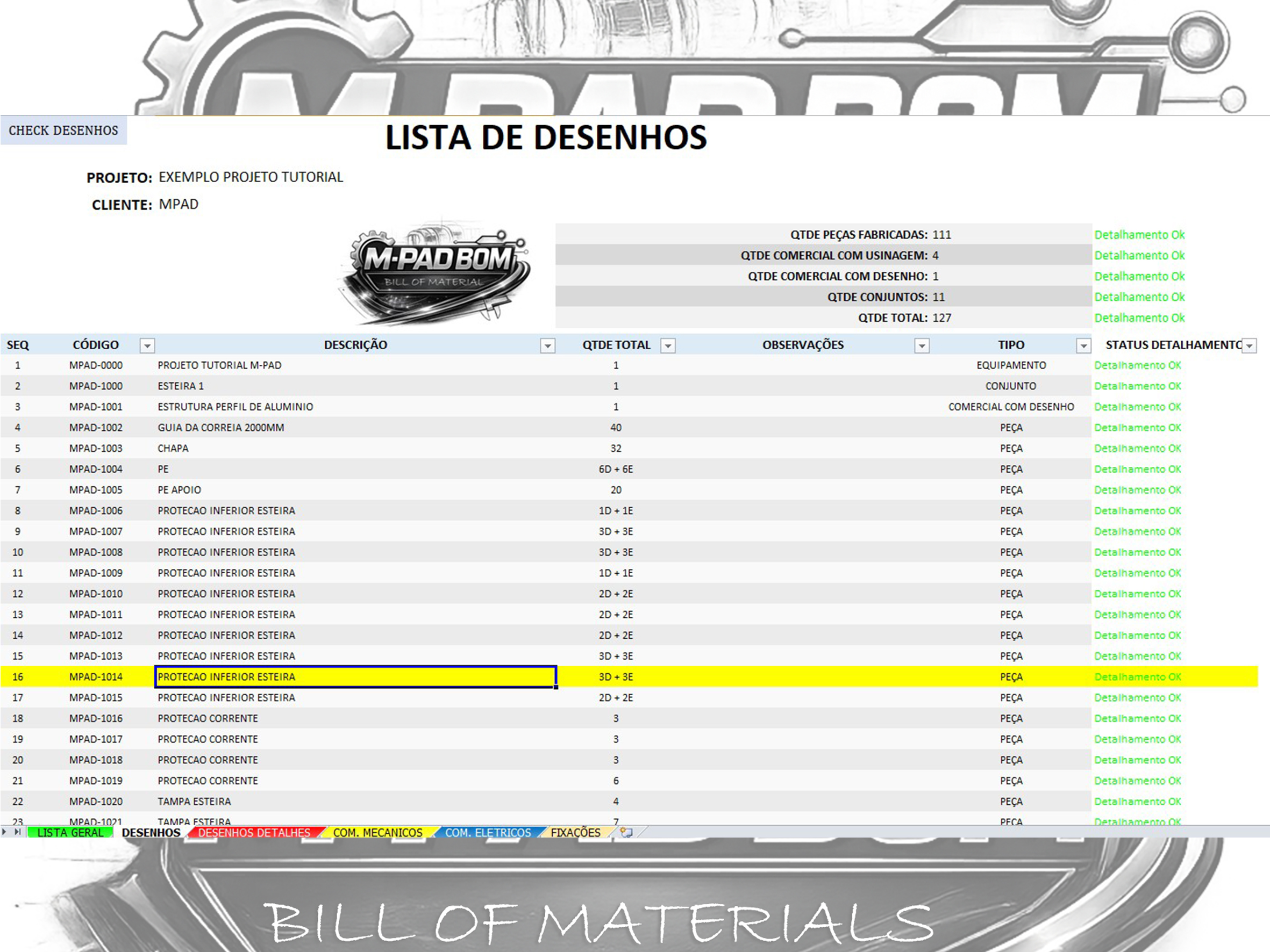 A M-PAD BOM é a planilha para Lista de Materiais criada por quem vive projetos mecânicos na prática.