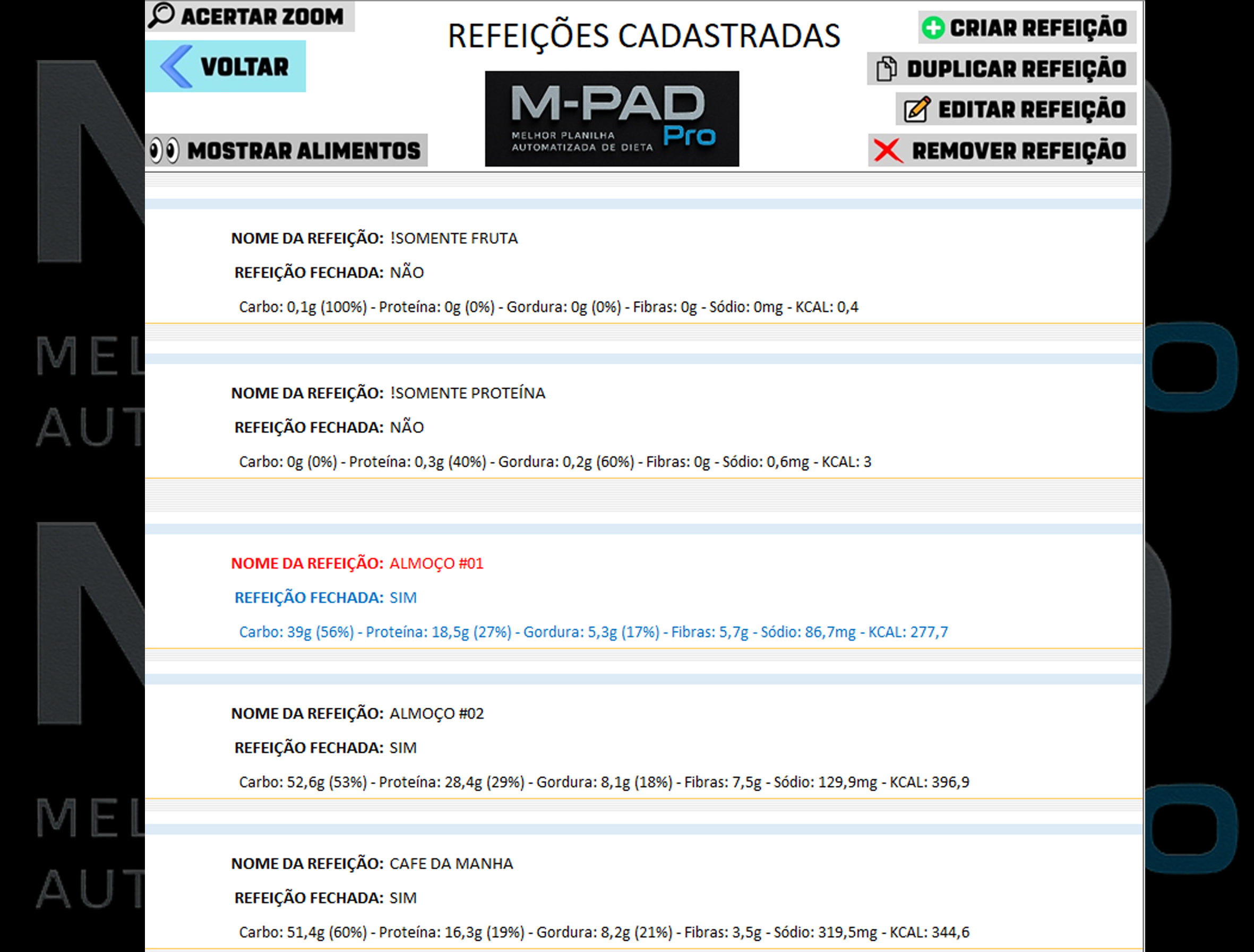 A M-PAD Pro calcula os macronutrientes automaticamente?