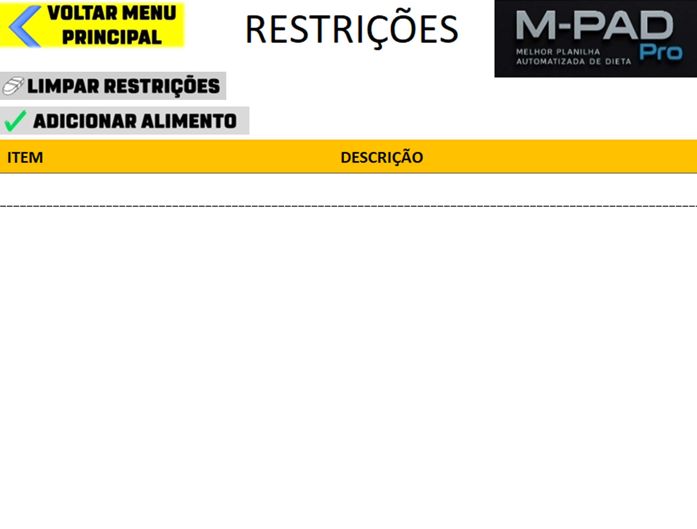 A M-PAD Pro deixa a planilha limpa e pronta para reiniciar.