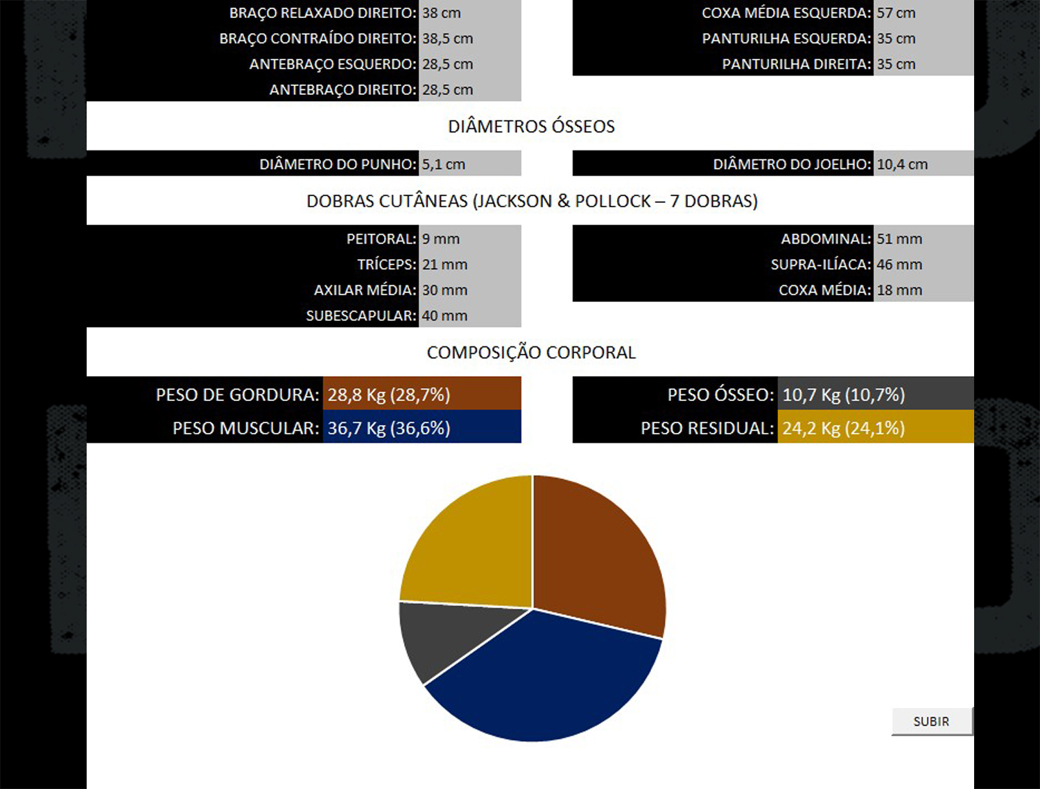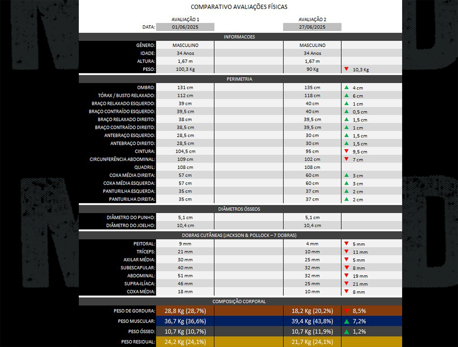 Faça 2 avaliações físicas do seu aluno, no início e no final do período de acompanhamento.